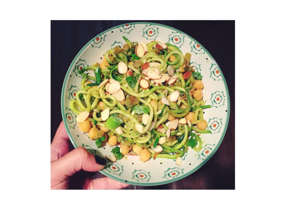 Just be aware that zucchinis are not a good source of proteins and carbs, so if you are looking for a main meal here (as I usually do), make sure to add more macronutrients like proteins or carbs to balance your body needs. If you would like to go in a vegan style, you can add peas, quinoa, nuts, garbanzo beans, etc. You can also add ground or shredded animal protein, it is totally up to you! Just get creative! You will need the spaguetti machine, which is super easy and convenient to use: this ou this one.