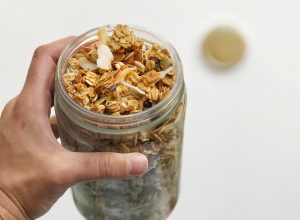 For me granola needs to be SUPER crunchy and to ensure that there are a few tips to follow: allow the granola to cool completely before storing – otherwise it will lose its crispness overnight, opt for a sealed container – that will keep microorganisms away and also help to avoid oxidation. And finally, the easiest and most efficient tip: if your granola loses its crunchiness, just put it back in the oven for a few minutes and that’s it! Hope you enjoy this recipe as much as I did!