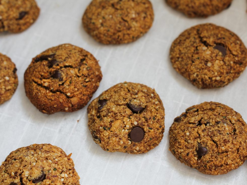 Esses cookies fiz com farinha de amêndoas para diminuir o nível de carboidratos e poder brincar com outros ingredientes, como chocolate amargo e o açúcar de coco, que na minha opinião, é um dos melhores tipos de açúcares em termos de saúde e sabor. Esses cookies são sem glúten, sem grãos, cheios de agentes antiinflamatórios do cacau, coco e amêndoas e riquíssimos em nutrientes pelo fato dos ingredientes serem bem integrais.